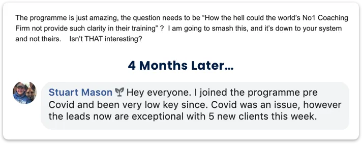 Ashley sold his engineering business and joined the Business Coach Academy because he didn't have a framework to apply the skills and knowledge he had acquired, but he wanted to add value to other companies. "It Gave me a framework to go in and add value"